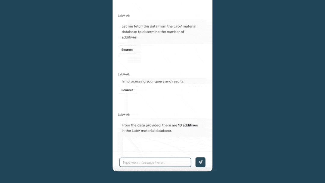 Im praktischen Einsatz dient der Co-Engineer als Arbeitswerkzeug, beispielsweise in der Formulierungsentwicklung. Er durchsucht bei Bedarf die gesamte Datenbasis, konsolidiert relevante Datensätze und unterstützt bei der Identifikation geeigneter Rezepturvarianten innerhalb definierter Randbedingungen S8eieh Abbildung unten). Ergänzend werden kontextrelevante Inhalte aus Dokumenten wie Normen, Spezifikationen oder Prüfberichten gezielt bereitgestellt. Analysen auf Mess- und Prozessdaten – von Berechnungen über Korrelationen bis hin zu Visualisierungen – lassen sich direkt durchführen und in strukturierte Zusammenfassungen überführen. Das Entwicklerteam benötigt mit dem KI-Assistenten so weniger Aufwand für seine Recherchen und Auswertungen und trifft datenbasierte Entscheidungen statt Bauchgefühl.