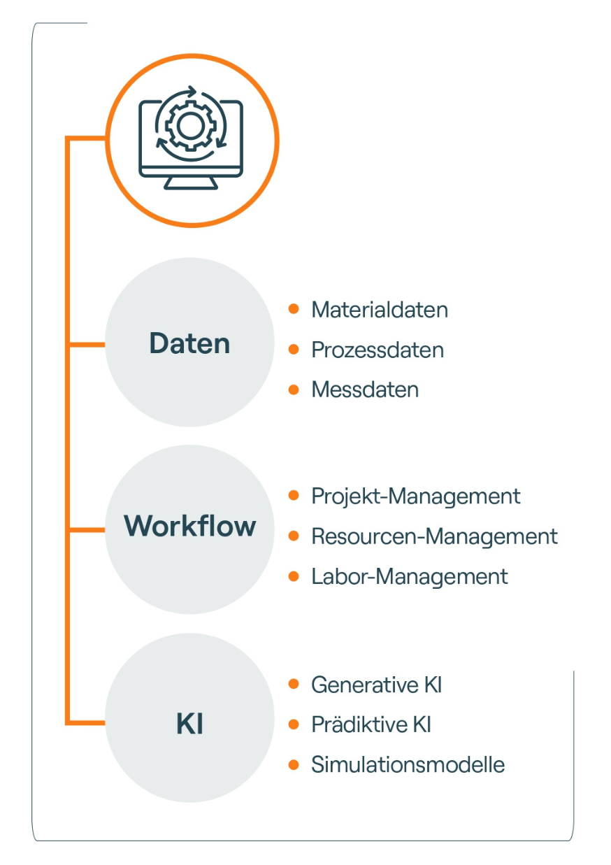 Erst auf Grundlage einer konsistenten Datenarchitektur kann KI in der Materialentwicklung ihr volles Potenzial entfalten. Strukturierte und zentralisierte Entwicklungsdaten ermöglichen es, Muster zu erkennen, Zusammenhänge sichtbar zu machen und Hypothesen datenbasiert zu überprüfen.